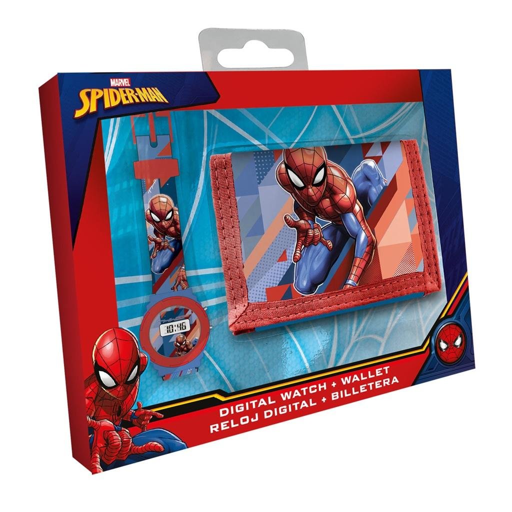 - Zestaw składa się z cyfrowego zegarka na pasku ozdobionym wzorem z kultowej bajki "Spiderman".