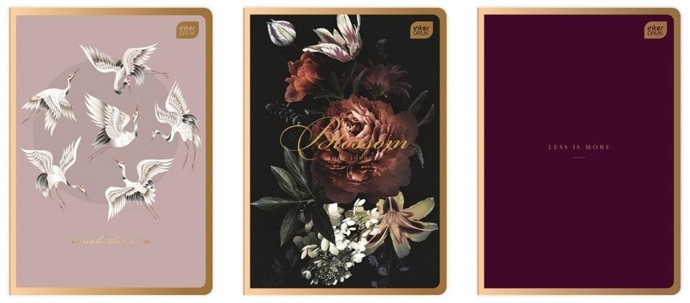 Opakowanie zbiorcze 10 sztuk.Format: B5. Liczba kartek: 80. Zadruk w kratkę. Zaokrąglone rogi. Okładka z efektem złotej matowej metalizy z modnym motywem natury lub z abstrakcyjnym wzorem. prečítať celé