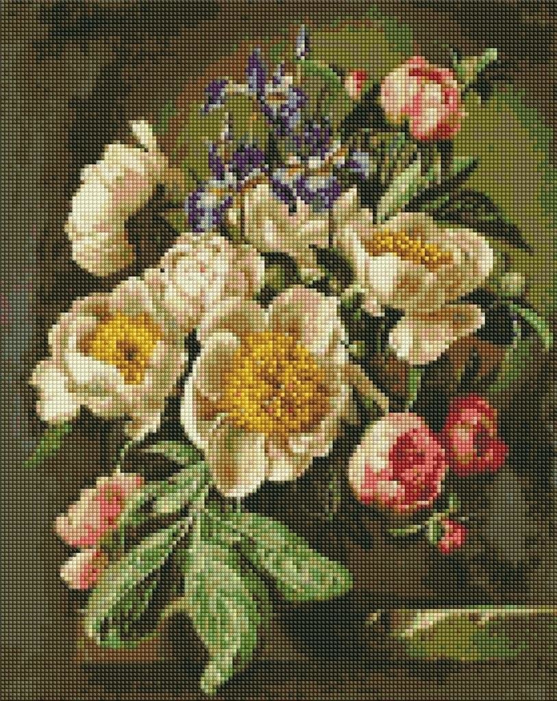 Diamentowa mozaika - Uroczy bukiet piwonii 40x50cm