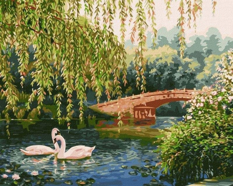 Malowanie po numerach - Łabędzie na jeziorze 40x50