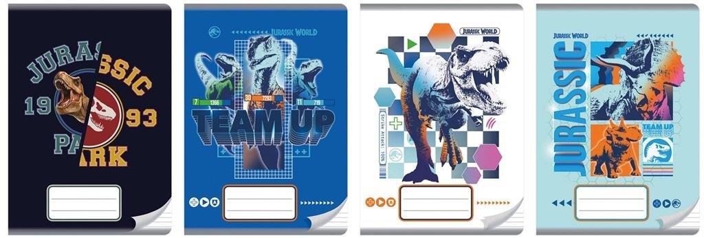 Zeszyt A5, posiada 32 kartki o gramaturze 70 g/m2 w linię. Charakteryzuje się estetycznym, lakierowanym wykończeniem i modną grafiką na okładce z serii Jurassic Park. Na zewnętrznej stronie okładki: imiennik - miejsce na wpisanie imienia, nazwiska, klasy.