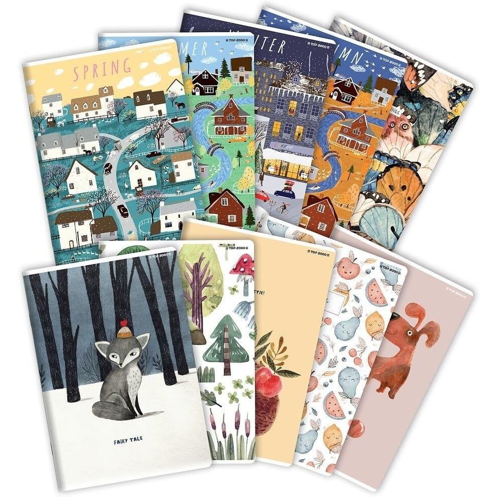 - Miękkie, kartonowe, laminowane okładki chronią wnętrze zeszytów.