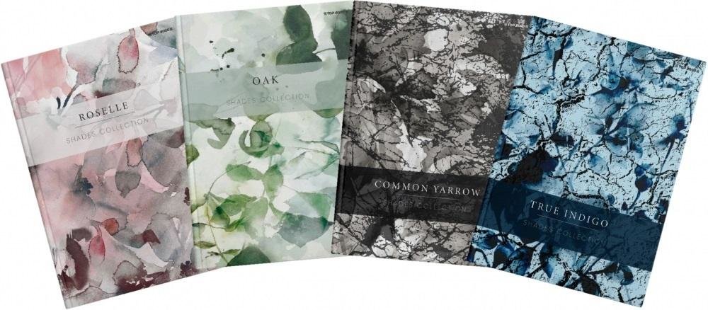 Kolekcja Shades to niezwykle ciekawe grafiki ukazujące efekty użycia danych roślin do barwienia tkanin. Nazwy naturalnych barwników są zawarte na froncie okładki, co dodatkowo wprowadza do kolekcji element ciekawostki. Szeroki wachlarz formatów i oprawy pozwoli na dobór odpowiedniego dla siebie asortymentu.