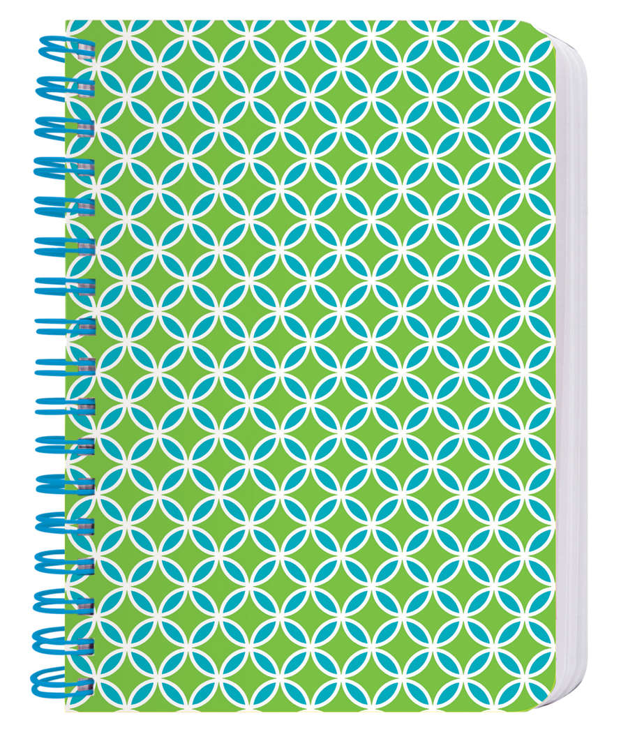 Poznámková kniha/zápisník má čistě bílé listy. Má 100 listů. Má kroužkovou vazbu.