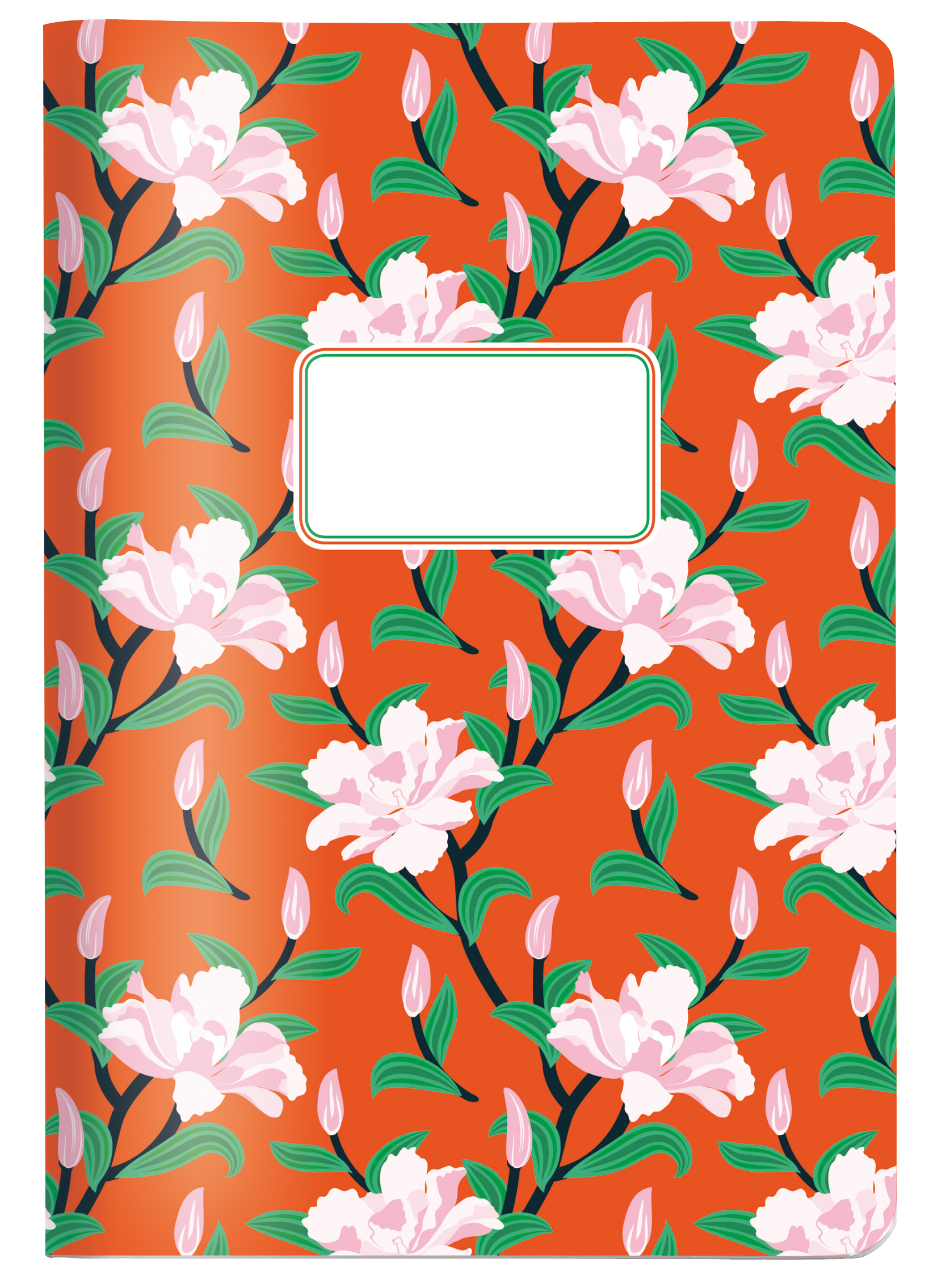 Sešit/Notes/Blok A5 oranžový s růžovými květy CEDON