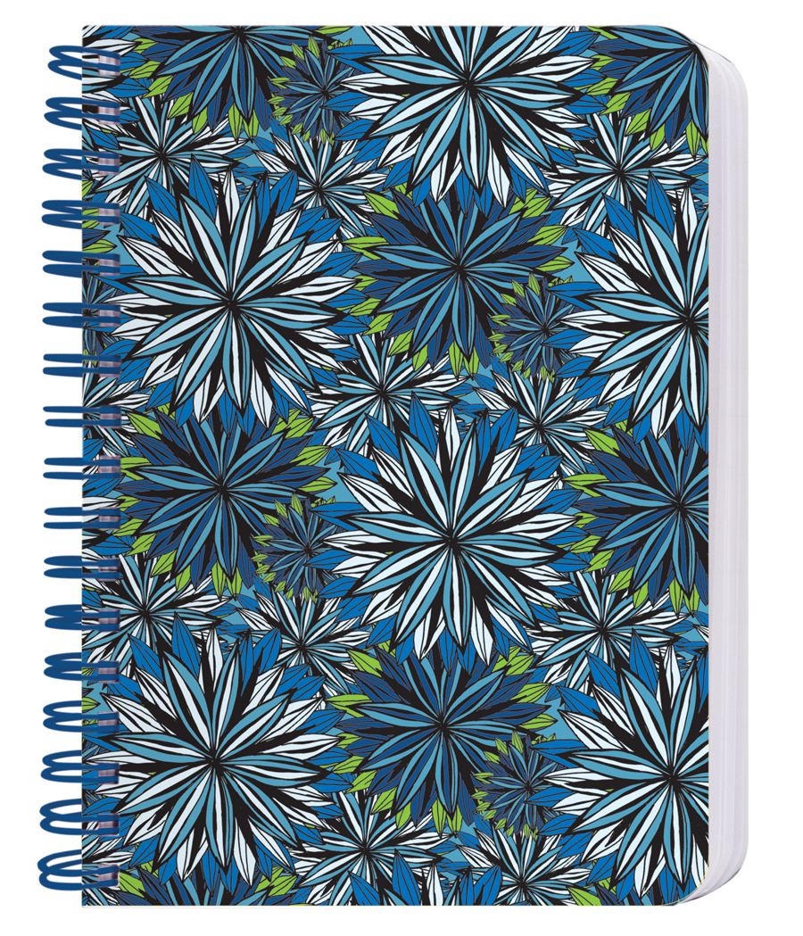 Poznámková kniha/zápisník má čistě bílé listy. Má 100 listů. Má kroužkovou vazbu.