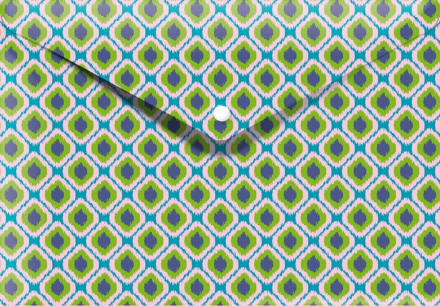 Obálka na dokumenty má zajímavý motiv kosočtverců v modro zeleno bílé barvě.Vaše dokumenty budou pěkně uložené a nezmačkají se. Uzavření na patentku jevelice praktické.Rozměry: 33,1 x 24,8 cm   Cedon prečítať celé