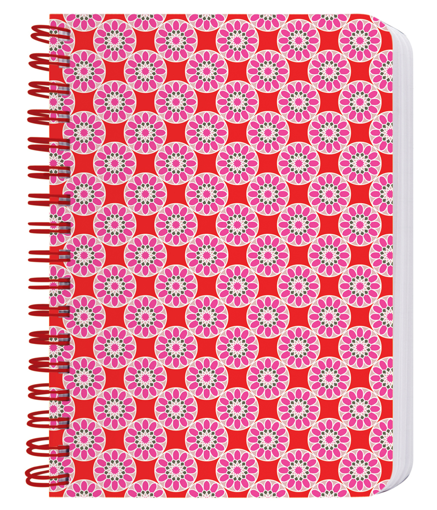 Poznámková kniha/zápisník má čistě bílé listy. Má 100 listů. Má kroužkovou vazbu.