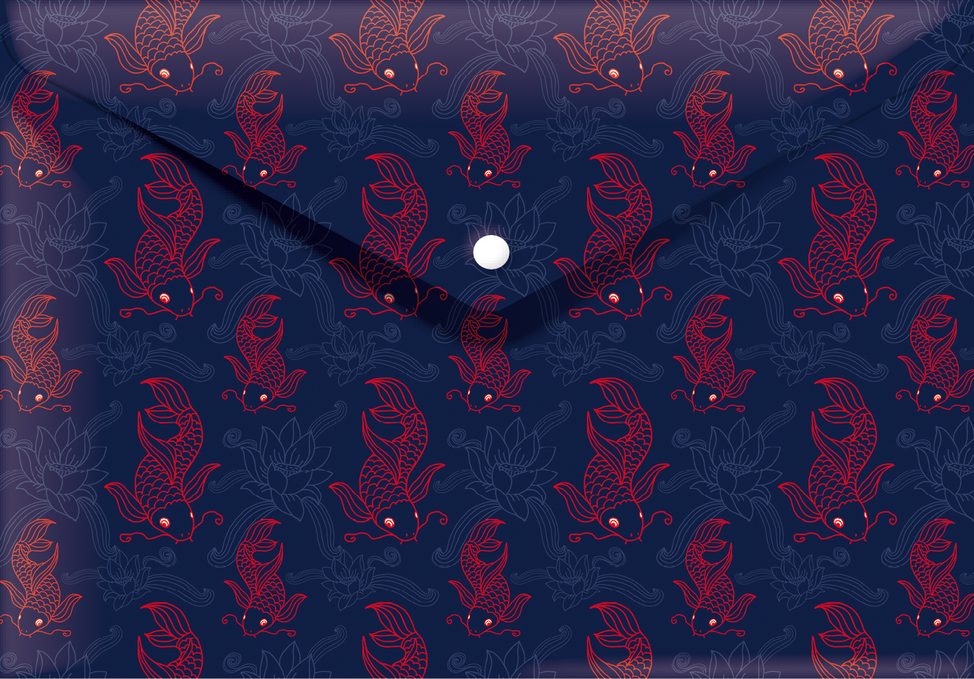 Obálka na dokumenty má zajímavý motiv ryb v červeno modré barvě.Vaše dokumenty budou pěkně uložené a nezmačkají se. Uzavření na patentku jevelice praktické.Rozměry: 33,1 x 24,8 cm   Cedon prečítať celé