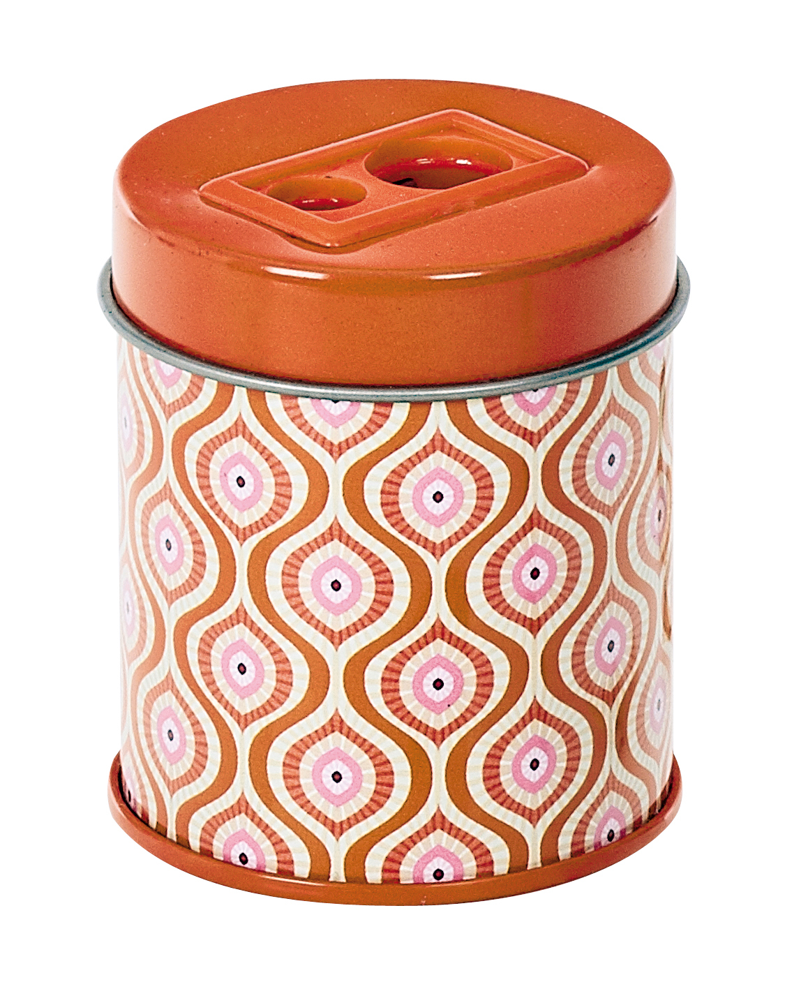 Dvojité ořezávátko na menší a větší tužky s motivem očí v růžovo oranžové barvě.Rozměry: 5 x 5 cm   Cedon prečítať celé
