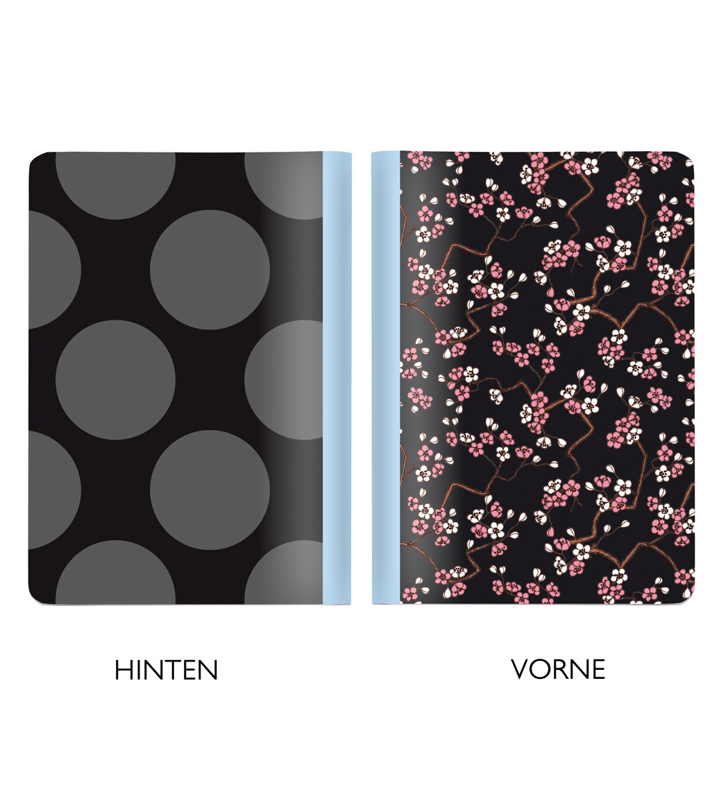 Notýsek/Zápisník A6 ,,TWO IN ONE"zepředu černý s květy, zezadu puntíky CEDON