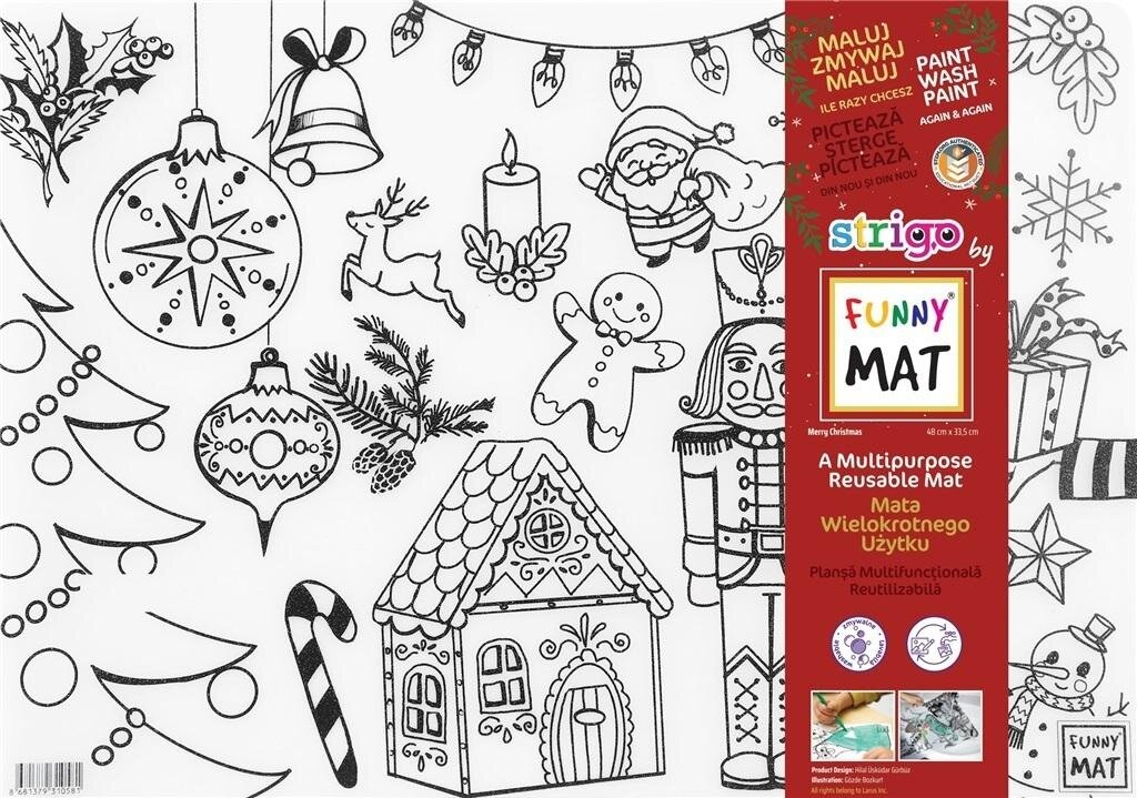 Mata transparentna Christmass Funny Mat 48x33,5cmWodoodporna mata wielokrotnego użytku do rysowania, malowania i nauki. Idealny produkt do rozwijania wyobraźni, pobudzenia kreatywności, pełni też funkcje edukacyjne. Do wykorzystywania maty używaj flamastrów, które posiadają tusz na bazie...