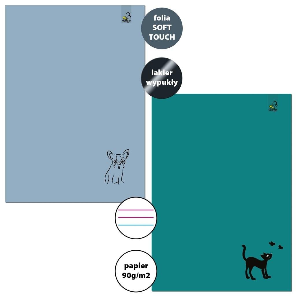 Zeszyt formatu A4, okładka folia soft touchlakier wybiórczy32 kartki, papier 90g/m2do szkoły, dla studenta i do biurakolorowe wzornictwo i w zależności od modelu zdobienie przy pomocy lakieru wybiórczego, brokatowania lub folii metalicznychkolory przedstawione na zdjęciu mogą nie odzwierciedlać w...