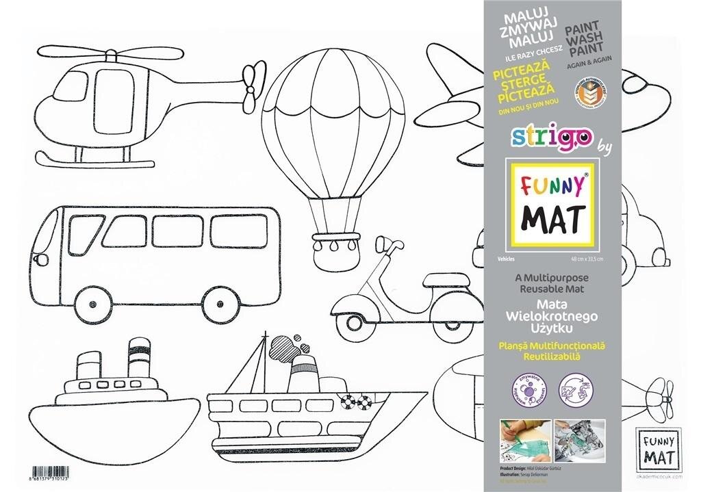 Mata transparentna Pojazdy Funny Mat 48x33,5cmWodoodporna mata wielokrotnego użytku do rysowania, malowania i nauki. Idealny produkt do rozwijania wyobraźni, pobudzenia kreatywności, pełni też funkcje edukacyjne. Do wykorzystywania maty używaj flamastrów, które posiadają tusz na bazie...