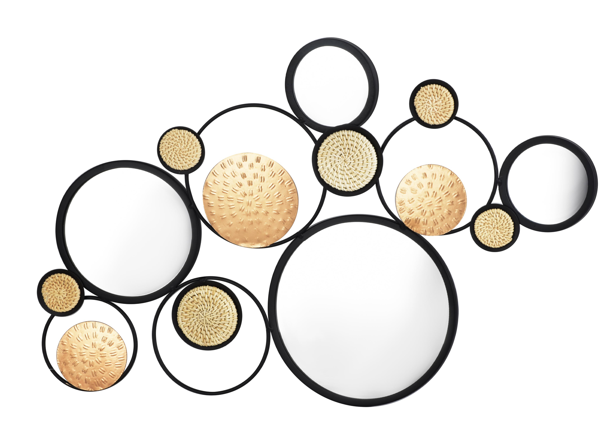 Metalowa dekoracja ścienna z serii TALA marki MONDEX since 1986. Utrzymana w najmodnieszej kolorystyce złota i czerni. Posiada dwa okrągłe lustra. Pełni rolę dekoracyjną jak praktyczną. 60x37x0,7cm pakowanie 4 szt / karton wewnętrzny12 szt / karton zbiorczywaga:830g prečítať celé