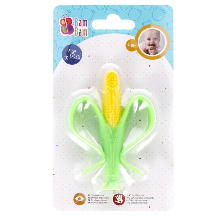 Kousátko Kukuřička určené pro dítě od 4 měsíců věku. Kousátko ideální pro malé ruce, umožňuje rozvoj a manuální dovednost. Toto měkké silikonové kousátko také přináší velkou úlevu v období prořezávání zoubků jemným masírováním dásní miminka a pečuje o hygienu zoubků miminka.