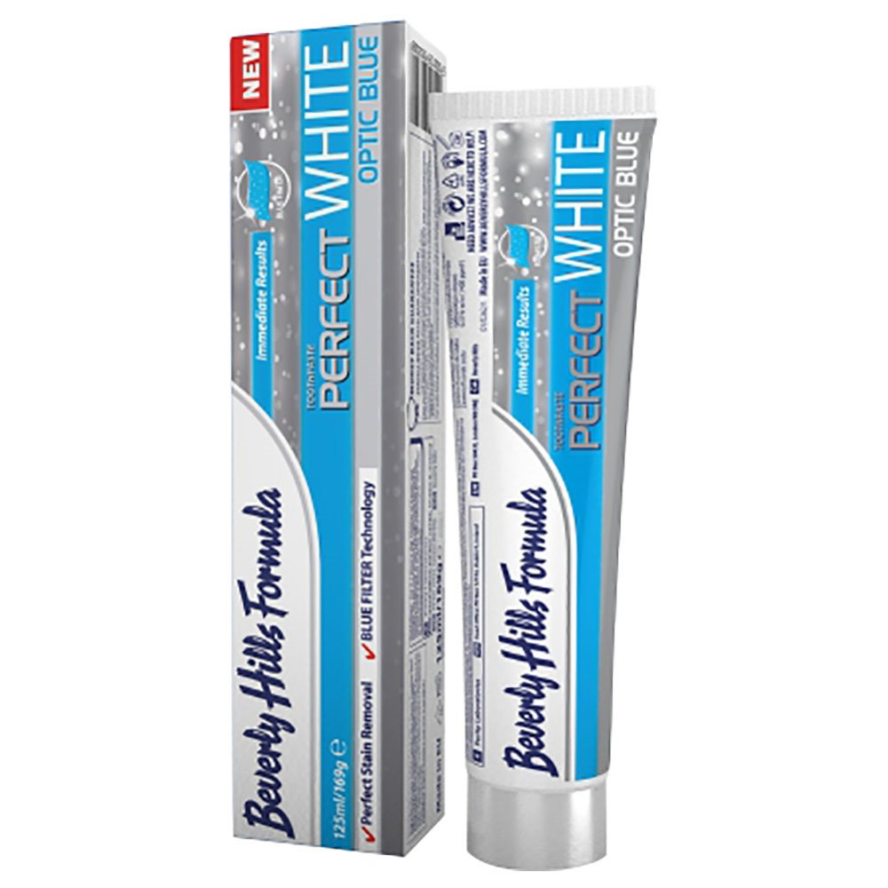 Beverly Hills Formula zubní pasta Perfect White Optic Blue - 125mlIrská značka Beverly Hills Formula poskytuje prvotřídní péči o zuby a dutinu ústní.Bělicí zubní pasty, ústní vody a další výrobky určené pro ústní hygienu mají silné účinky, které zajistí jejich uživatelům nádherný úsměv jako z...