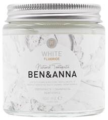 Zubní pasta bílá s fluoridem je bělící zubní pasta se 100% přírodním a veganským složením s fluoridem čistí chrání citlivou zubní sklovinu proti zubnímu kazu. V šetrném balení v atraktivním recyklovatelném skleněném obalu. Extrakt z heřmánku zklidňuje dásně, výtažky ze šalvěje a rakytníku pomáhají při zánětech i paradontéze. Díky obsaženému mátovému oleji pak dostane i obyčejný polibek zcela jiný rozměr.