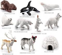 Zestaw dzikich zwierząt z domem z lodu 9szt