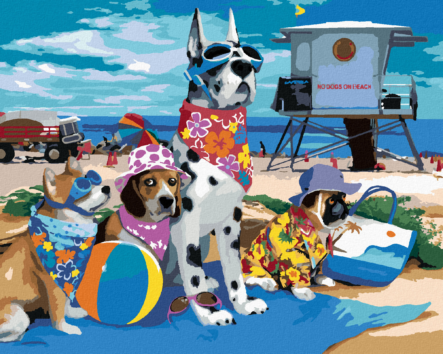 Malování podle čísel - PSI NA VÝLETĚ NA PLÁŽI (HOWARD ROBINSON) - 80x100 cm, vypnuté plátno na rám