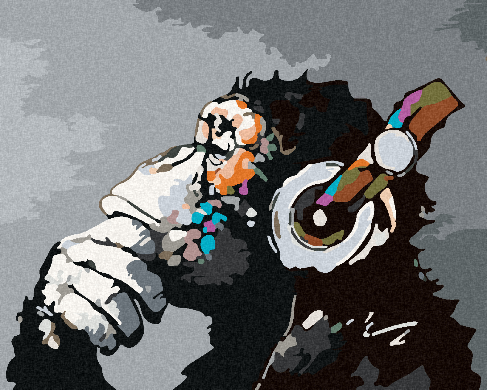 Malování podle čísel - OPICE POSLOUCHAJÍCÍ HUDBU - 80x100 cm, vypnuté plátno na rám