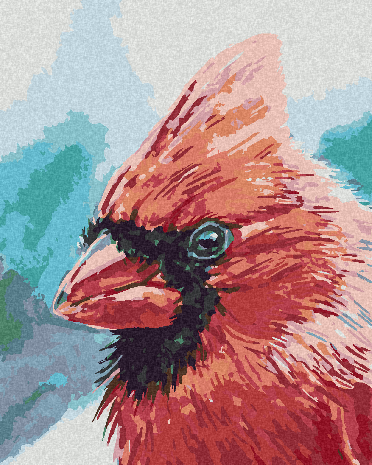 Malování podle čísel - PTÁK KARDINÁL - 80x100 cm, vypnuté plátno na rám