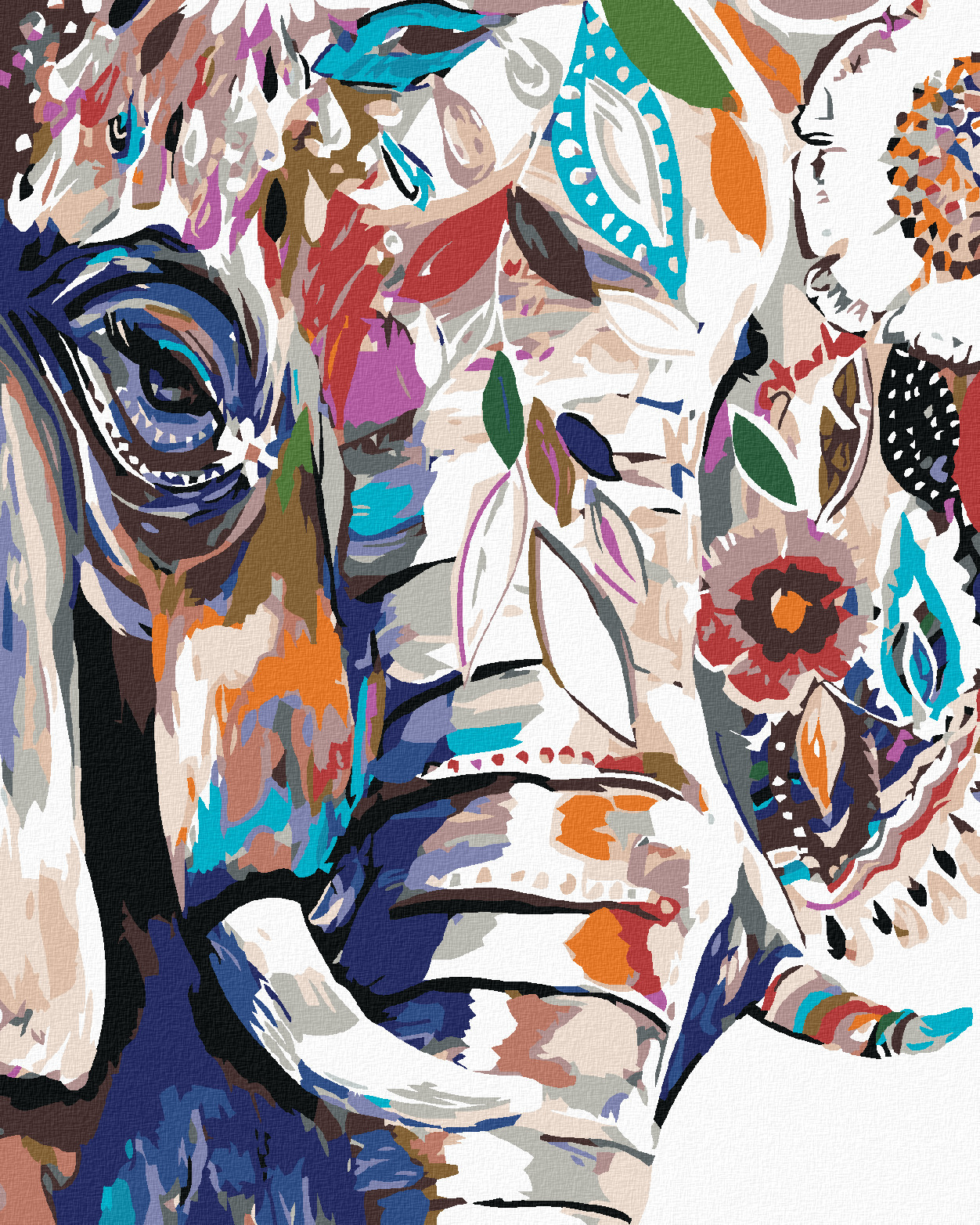 Malování podle čísel - KVĚTINOVÝ SLON - 80x100 cm, bez rámu a bez vypnutí plátna