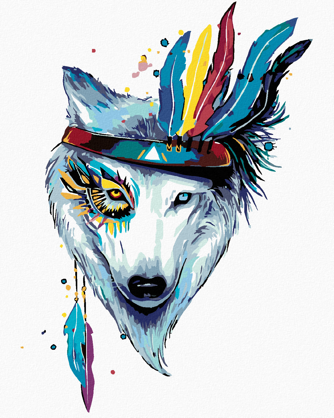 Malování podle čísel - VLK S ČELENKOU - 80x100 cm, vypnuté plátno na rám