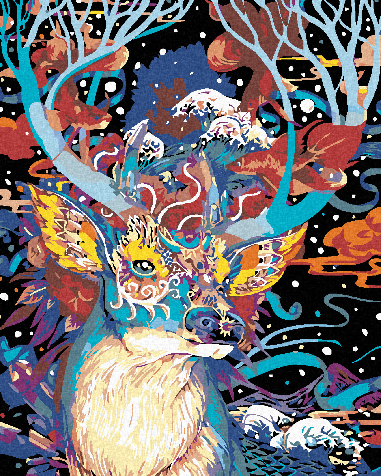 Malování podle čísel - BAREVNÝ JELEN I - 80x100 cm, bez rámu a bez vypnutí plátna