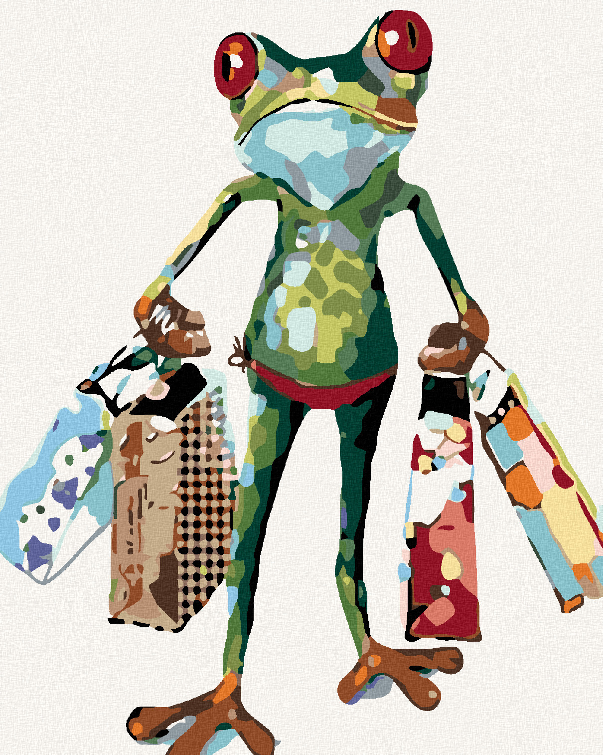 Malování podle čísel - ŽÁBA NA NÁKUPECH - 80x100 cm, vypnuté plátno na rám