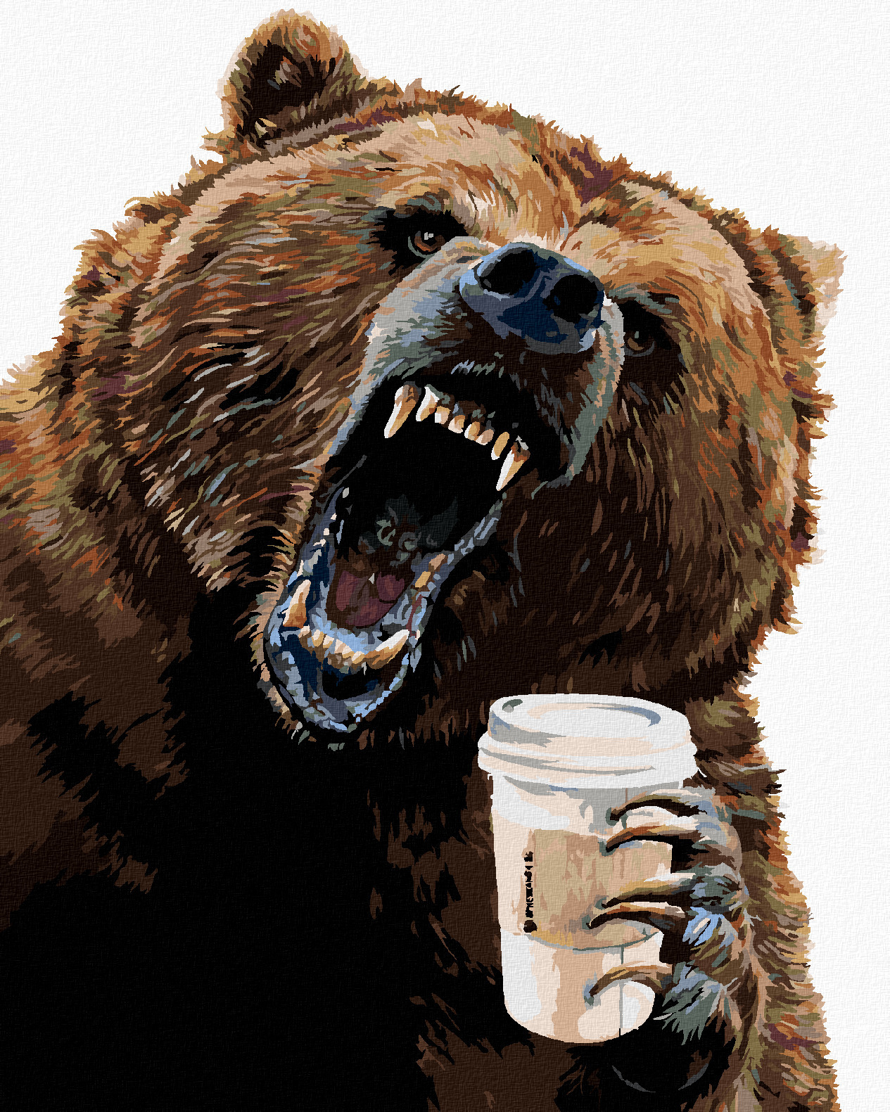 Malování podle čísel - MEDVĚD A KÁVA (HOLLY SIMENTAL) - 80x100 cm, bez rámu a bez vypnutí plátna