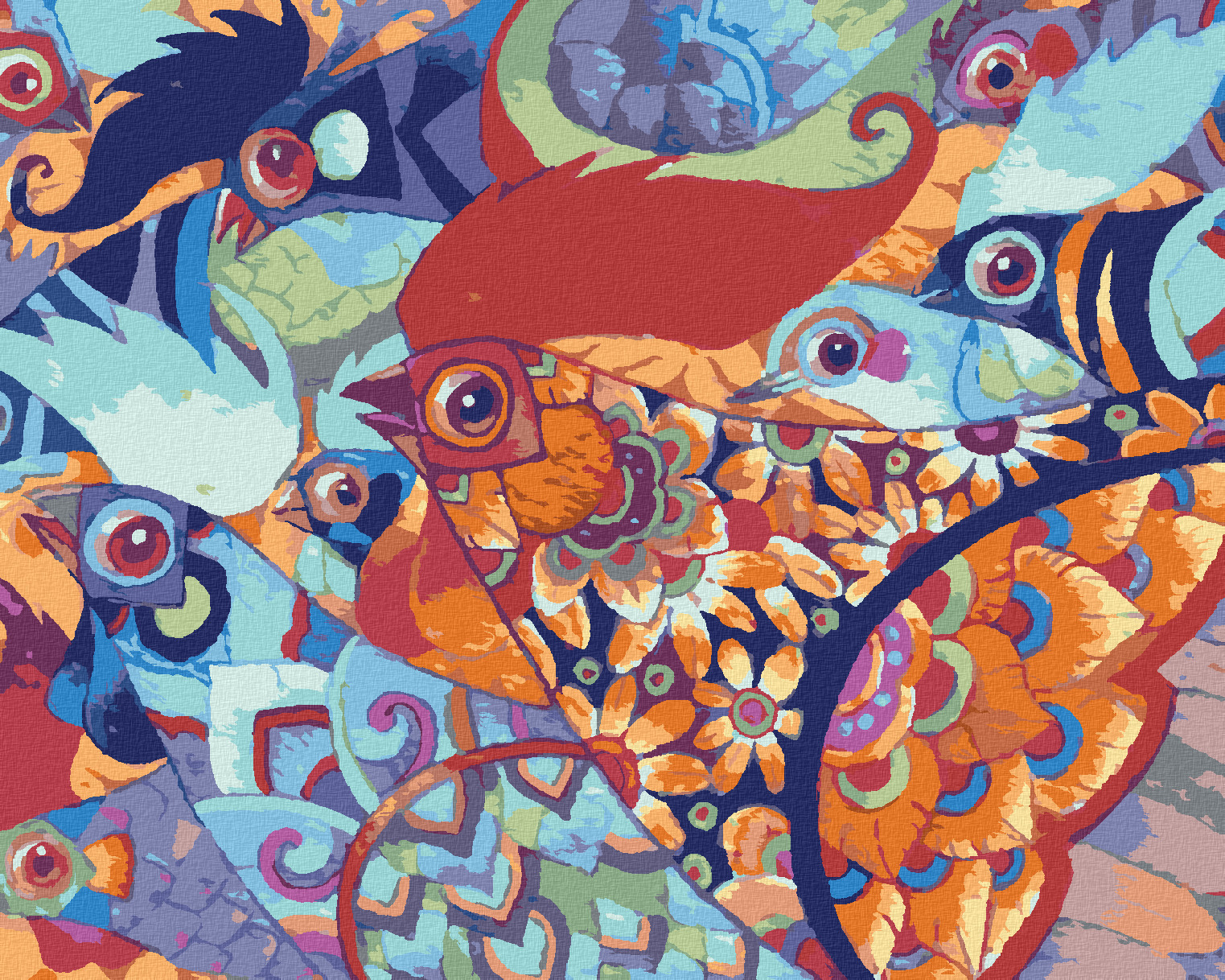 Malování podle čísel - BAREVNÉ MALOVANÉ SLEPICE - 40x50 cm, bez rámu a bez vypnutí plátna