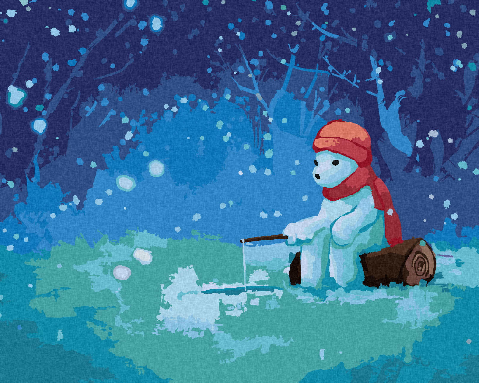 Malování podle čísel - LEDNÍ MEDVĚD RYBAŘÍ V ZIMĚ - 80x100 cm, vypnuté plátno na rám