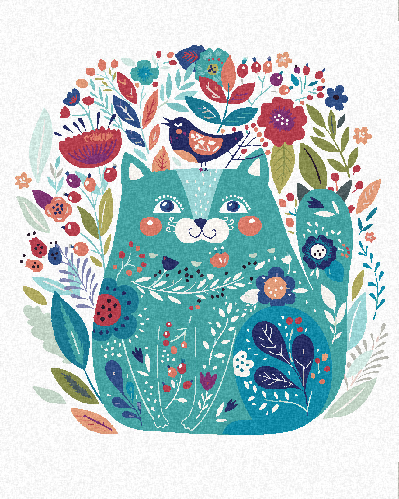 Malování podle čísel - KVĚTINOVÁ KOČKA - 40x50 cm, bez rámu a bez vypnutí plátna