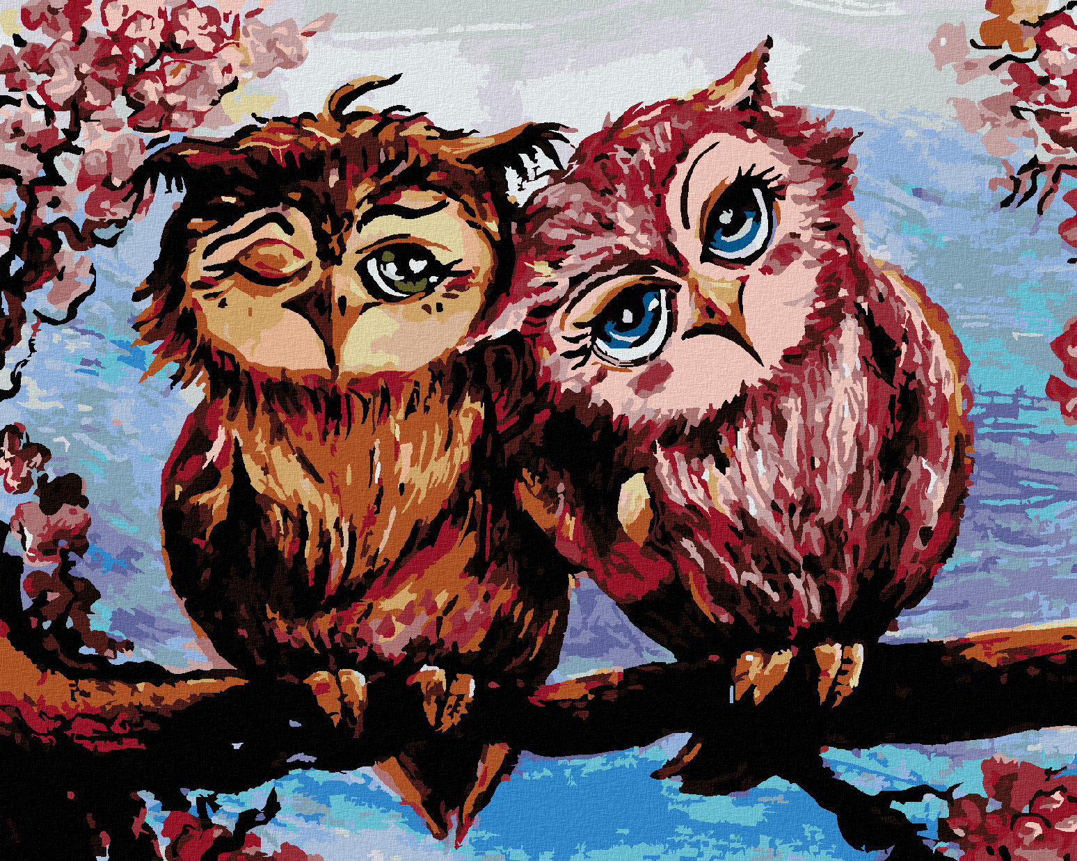 Malování podle čísel - SOVY NA STROMĚ - 80x100 cm, bez rámu a bez vypnutí plátna