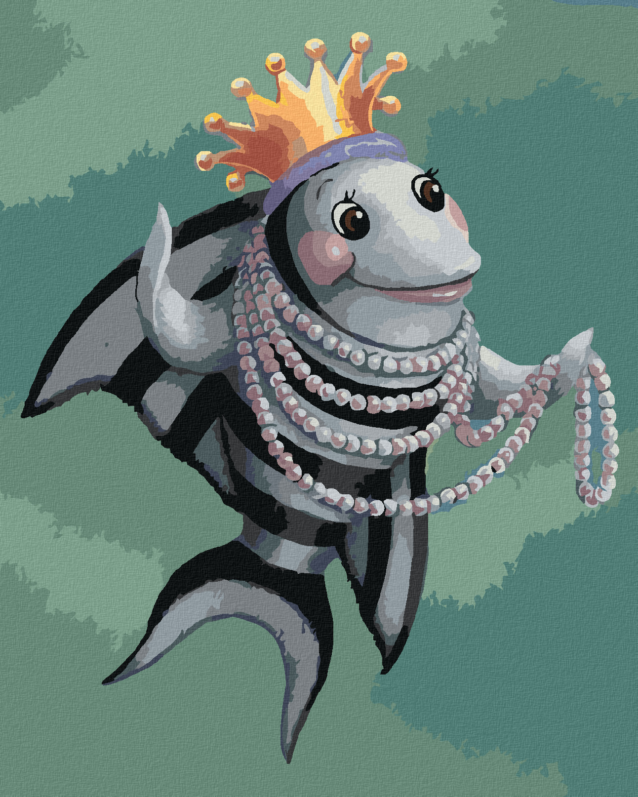 Malování podle čísel - RYBA S KORUNOU A KORÁLKY (SUE ELLEN BROWN) - 80x100 cm, bez rámu a bez vypnutí plátna
