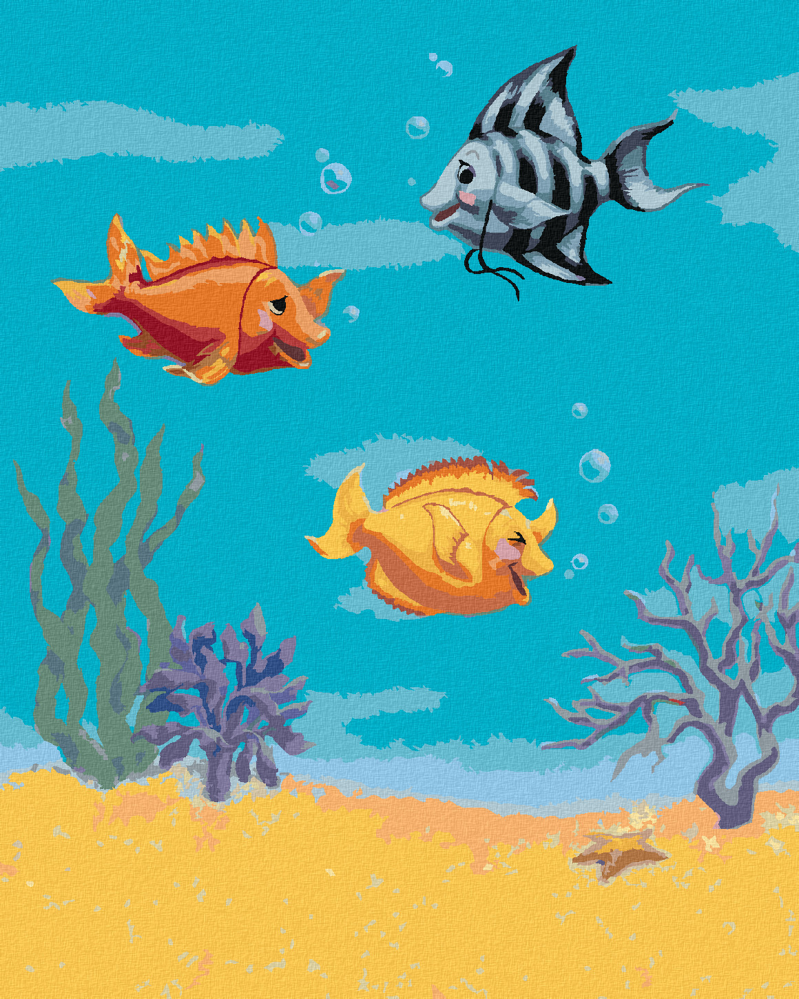 Malování podle čísel - TŘI SMĚJÍCÍ SE RYBIČKY (SUE ELLEN BROWN) - 80x100 cm, vypnuté plátno na rám