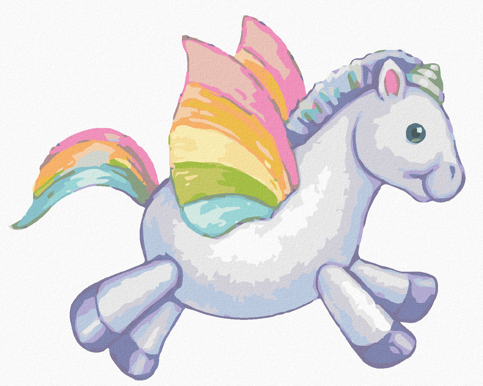 Malování podle čísel - DUHOVÝ PLYŠOVÝ JEDNOROŽEC II (SUE ELLEN BROWN) - 80x100 cm, bez rámu a bez vypnutí plátna