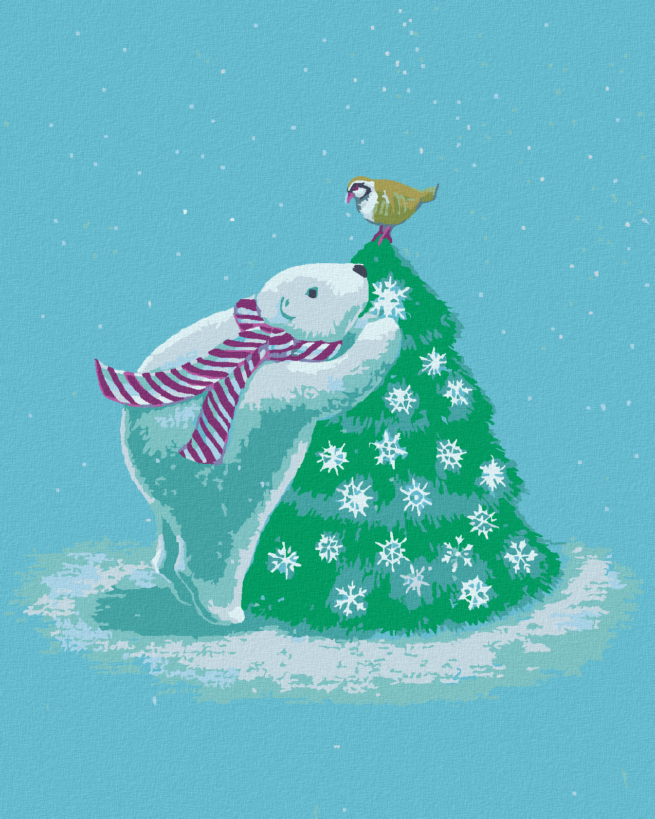 Malování podle čísel - LEDNÍ MEDVÍDEK U STROMU (SUE ELLEN BROWN) - 40x50 cm, bez rámu a bez vypnutí plátna
