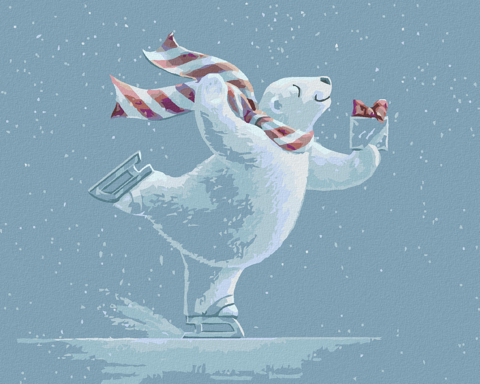 Malování podle čísel - MEDVÍDEK NA BRUSLÍCH S DÁREČKEM (SUE ELLEN BROWN) - 40x50 cm, bez rámu a bez vypnutí plátna