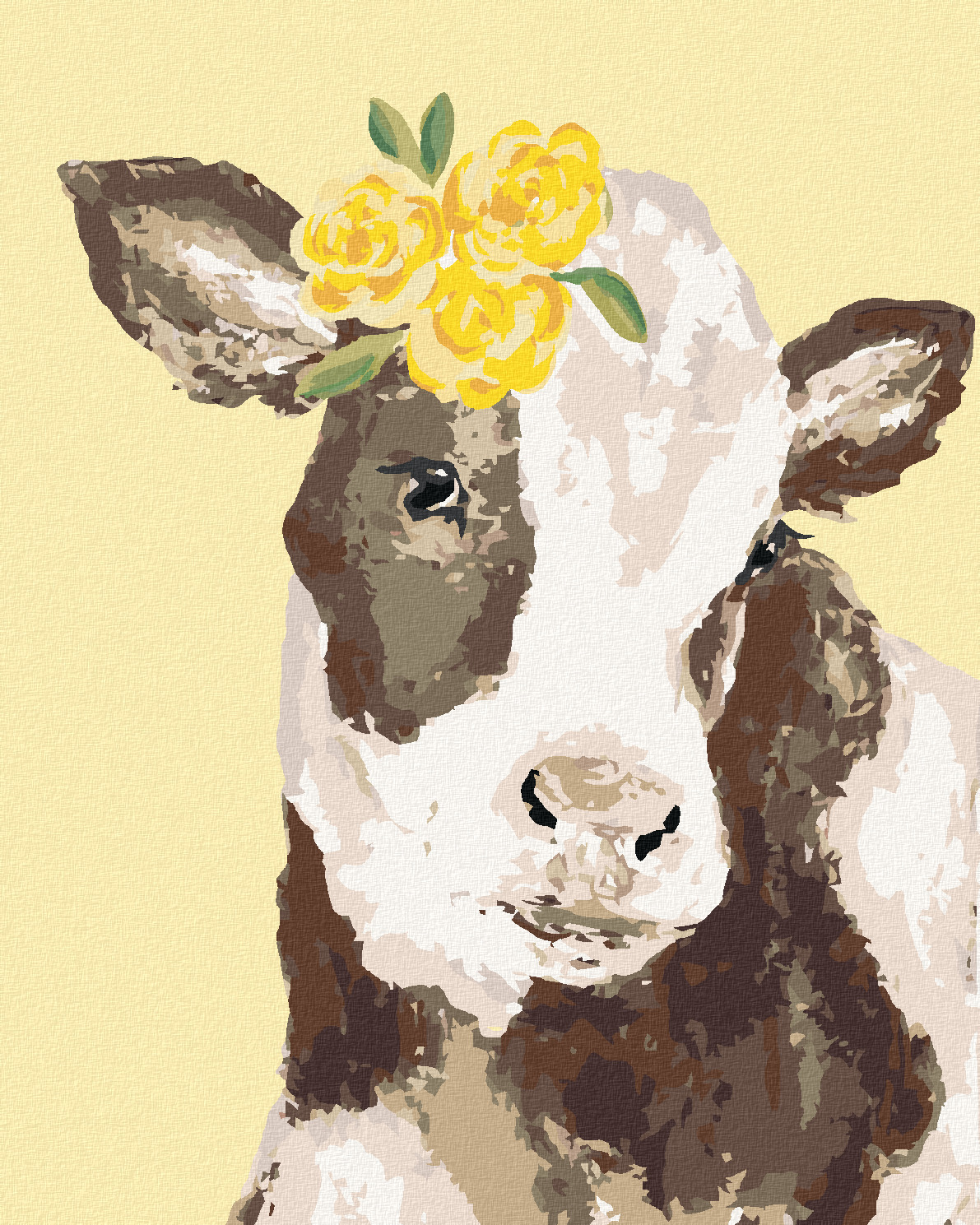 Malování podle čísel - KRÁVA SE ŽLUTOU KVĚTINOU (HALEY BUSH) - 40x50 cm, vypnuté plátno na rám