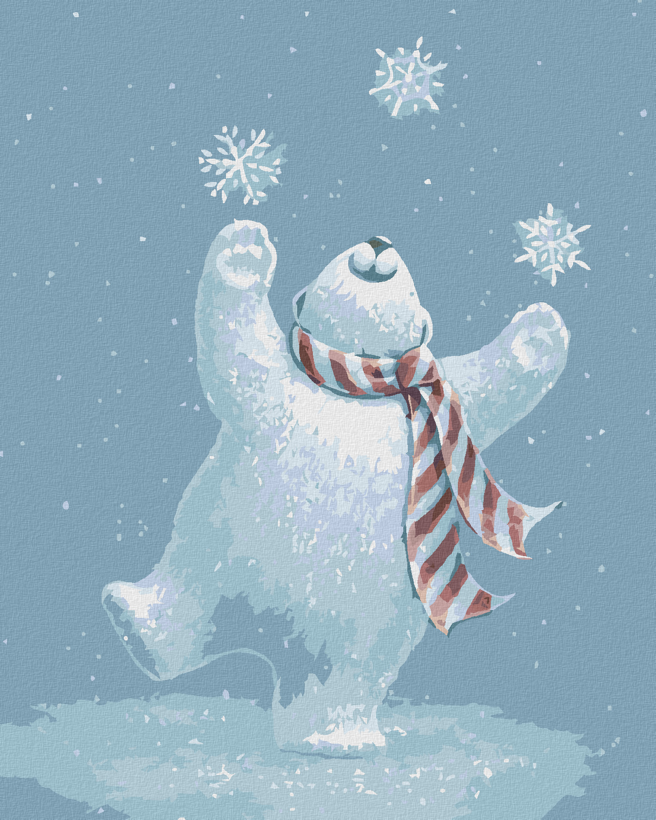 Malování podle čísel - MEDVÍDEK ŽONGLUJÍCÍ S VLOČKAMI (SUE ELLEN BROWN) - 80x100 cm, vypnuté plátno na rám