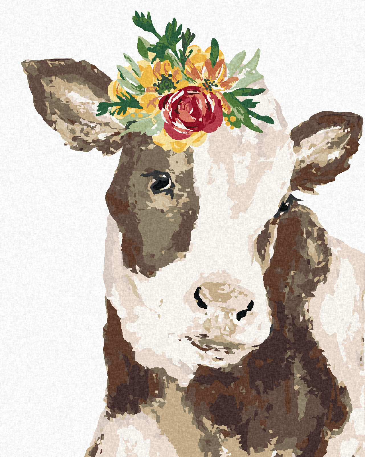 Malování podle čísel - KRÁVA S KVĚTINOU (HALEY BUSH) - 80x100 cm, bez rámu a bez vypnutí plátna