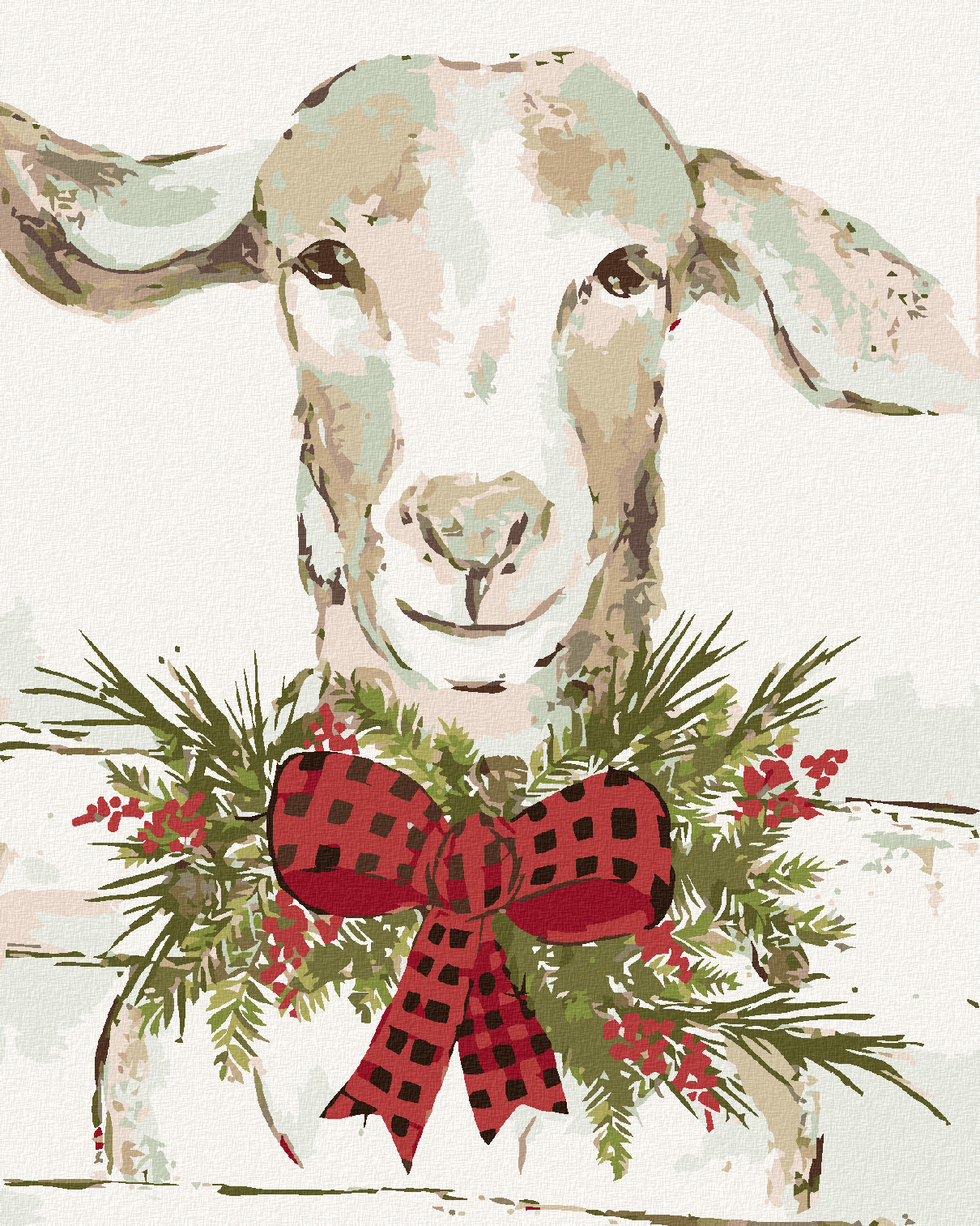 Malování podle čísel - OVCE S ČERVENOU MAŠLÍ (HALEY BUSH) - 80x100 cm, vypnuté plátno na rám