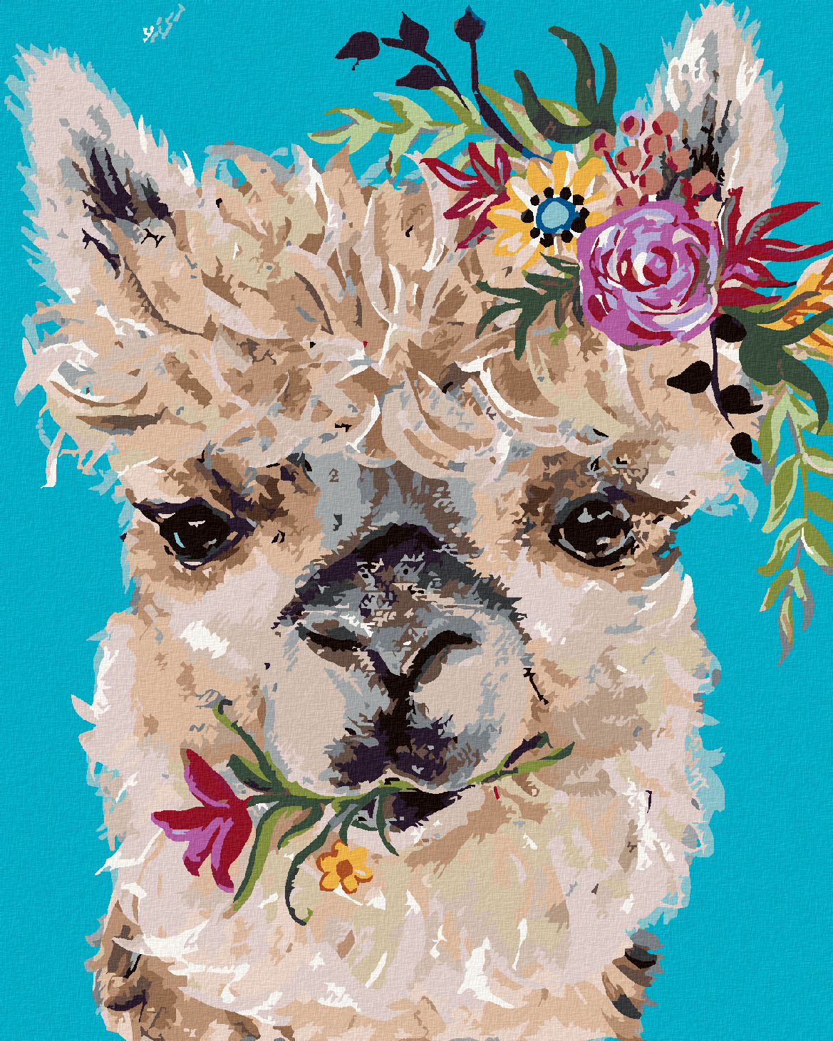Malování podle čísel - LAMA S KVĚTINOU (HALEY BUSH) - 80x100 cm, vypnuté plátno na rám