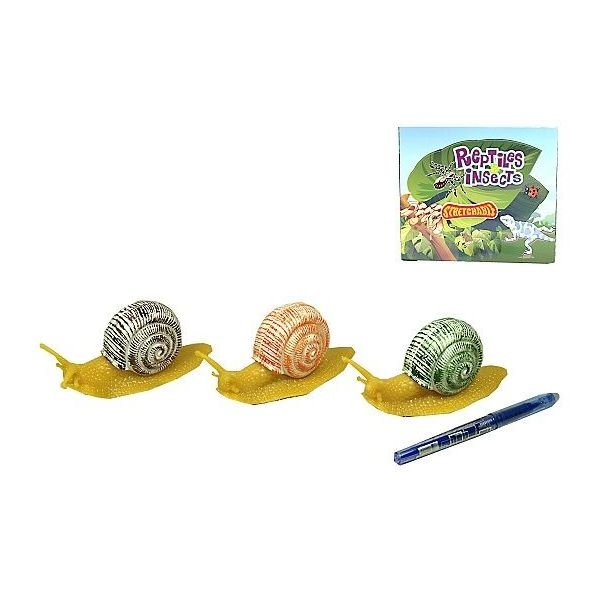 Šnek s ulitou, 12 ks v display boxu. Šnek ve 3 barevných provedeních. Hračka je vhodná pro děti od 3 let. prečítať celé