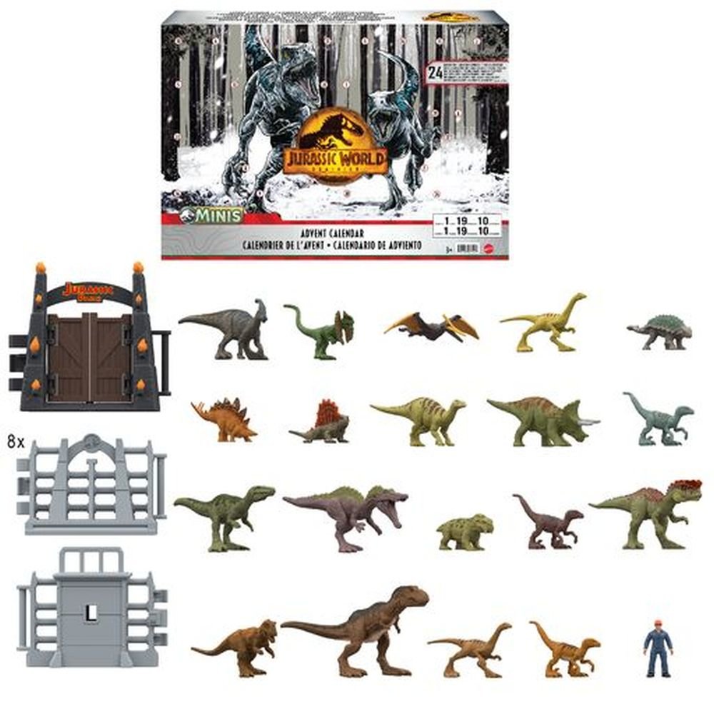 Připravte se na napínavou akci a dobrodružství s filmem Jurský svět: Nadvláda! Tento adventní kalendář odpočítává 24 dní jurských oslav s celkem více než 30 dílky hraček, včetně 19 mini dinosaurů, 1 mini figurky člověka a několika dílků brány a plošiny, to vše ve svátečním balení.