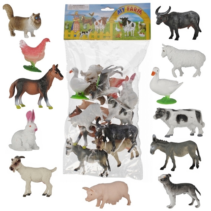 Dítě si může vytvořit vlastní farmu se všemi zvířátky a seznámit se s nimi. Série figurek obsahuje exempláře zvířat chovaných na farmách po celém světě. Balení obsahuje býka, kráva, koza, králík, pes, osel, prase, ovce, kočka, kůň, slepice, kachna. Rozměry balení jsou 22x37x5cm. Zvířata určená pro děti ve věku 3+.