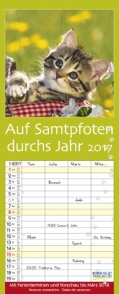 Praktischer Familientimer mit 4 Spalten und niedlichen Katzenfotos. Mit Ferienterminen. prečítať celé