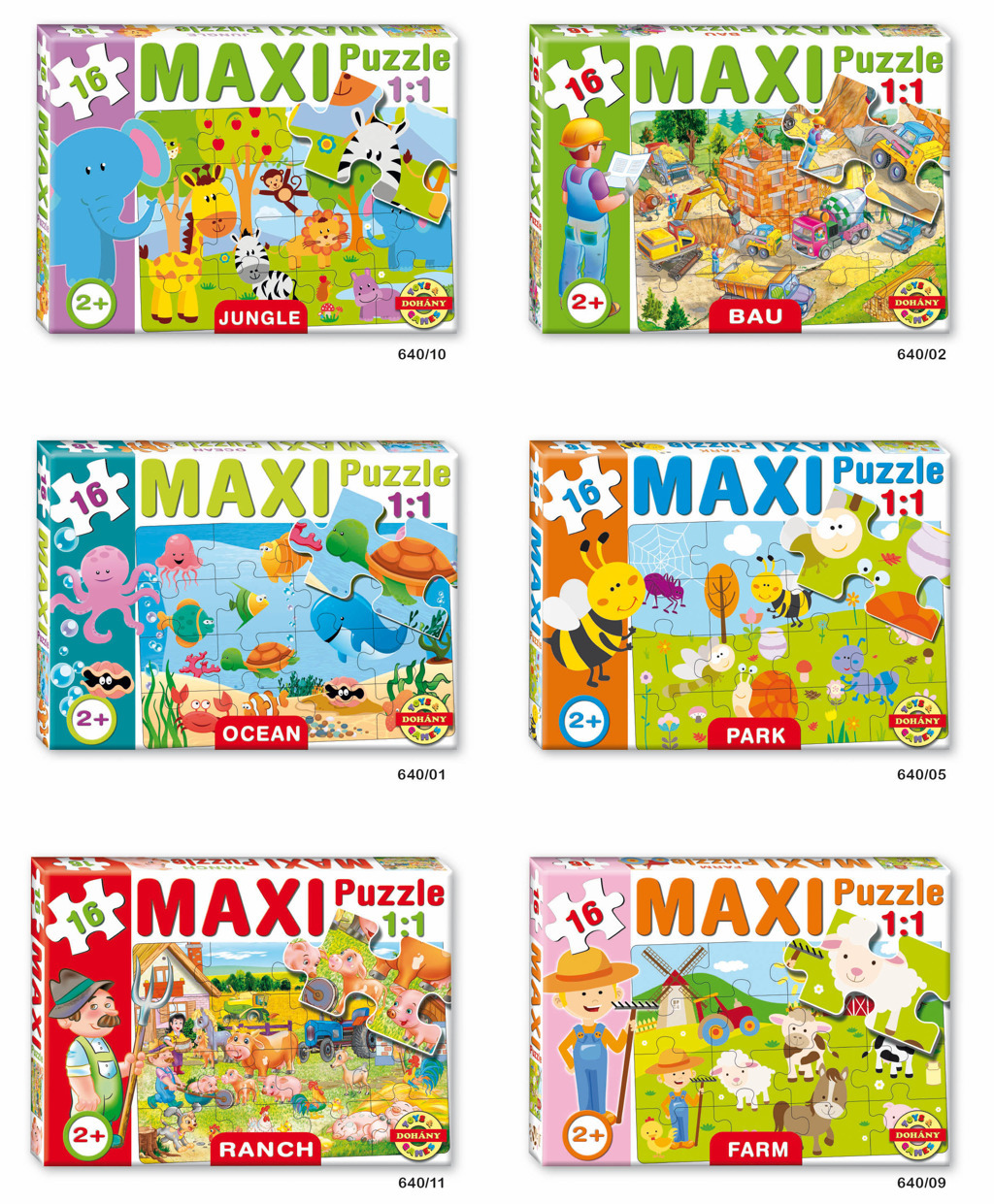 Puzzle maxi pro nejmenší. 6 různých druhů – na statku/džungle/na stavbě/oceán/zví­řátka na farmě/zvířátka na louce. 16 dílků v každém balení. Vyrobeno v EU. prečítať celé
